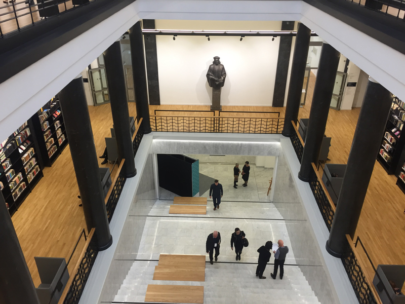 Під час конференції «Бібліотеки 21 століття: традиції та інновації» у доповіді генерального директора НБЛ професора Ренальдаса Гудаускаса «Життя Бібліотеки як модель» ішлося про те, що поважна річниця Бібліотеки є сприятливою можливістю оцінити накопичений досвід та з новою енергією й ідеями продовжити історію успіху Бібліотеки. Він зазначив, що у час соціальних перетворень основна діяльність бібліотек спрямована на управління змінами. Важливо, щоб бібліотеки враховували тенденції розвитку суспільства і стали активними учасниками цих тенденцій. Навіть зважаючи на зміни в епоху оцифрування, великих обсягів інформації та штучного інтелекту, Національна бібліотека Литви імені Мартінаса Мажвідаса неухильно виконує свою місію збереження та управління тим, що створювалося протягом століть у всій країні. Бібліотека пропонує творчий бібліотечний простір, що живить демократичне суспільство грамотних та обізнаних громадян Литви. Бачення НБЛ – стати невід'ємною частиною прогресу країни в галузі інформаційної політики, культури, освіти, науки та економіки. Місія бібліотеки – бути простором знань, що формують цінності для суспільства.