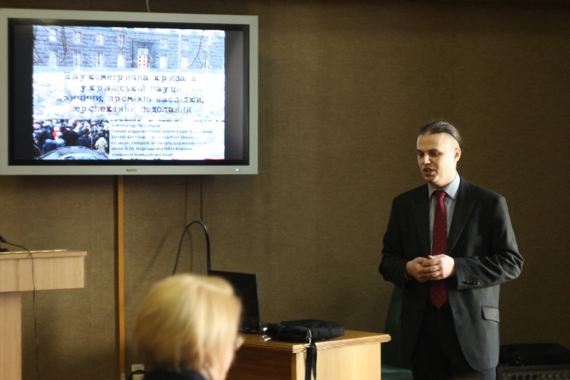 Саме про це говорили нещодавно учасники дискусії, яка відбулась за ініціативи молодих учених Відділення історії, філософії, права НАН України і в якій брали участь учені НБУВ, представники наукових установ Національної академії наук України, члени Ради молодих вчених НАНУ та інші зацікавлені особи. Центром обговорення стала доповідь голови ради молодих вчених при Відділенні історії, філософії та права НАН України, старшого наукового співробітника Інституту держави і права імені В. М. Корецького НАН України Олександра Малишева на тему «Наукометрична криза в українській науці: причини, проміжні наслідки, перспективи подолання».
