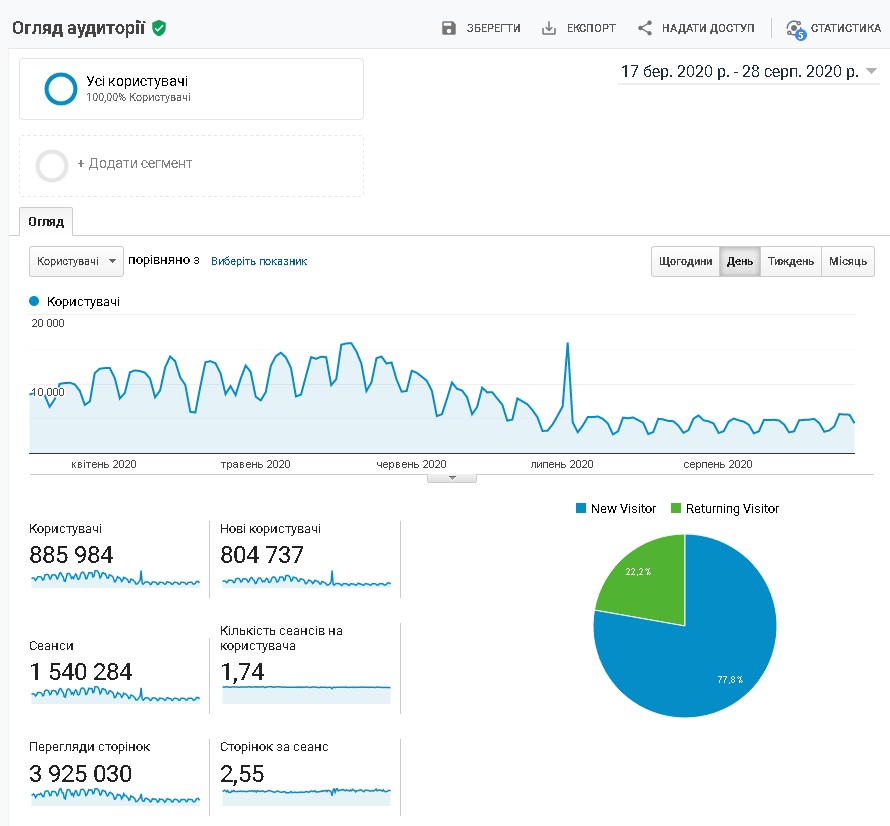Статистика відвідувань інформаційних ресурсів НБУВ за 17.03.2020 – 28.08.2020: