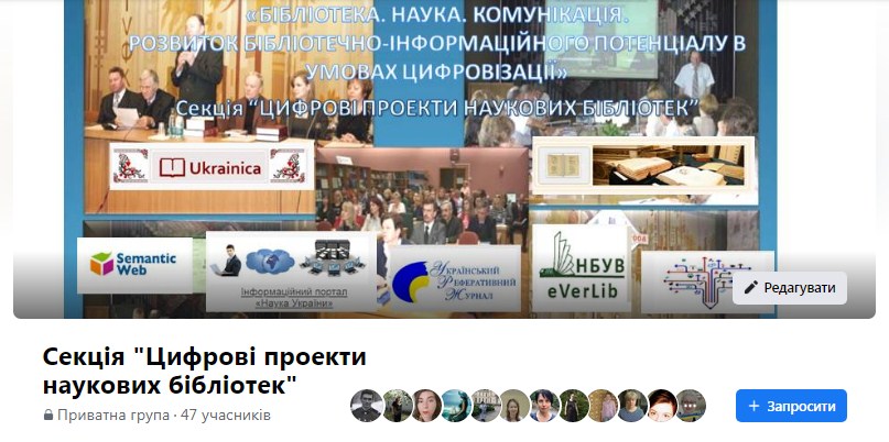 Інформація про роботу секції «Цифрові проекти наукових бібліотек» була розповсюджена у групі соціальної мережі Facebook «Наукові конференції та публікації», на сторінці «Інформаційні технології в науковій бібліотеці» та персональних сторінках учасників групи.