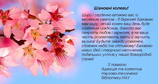 З нагоди чудового свята весни - 8 березня - нас вітають колеги і друзі!
