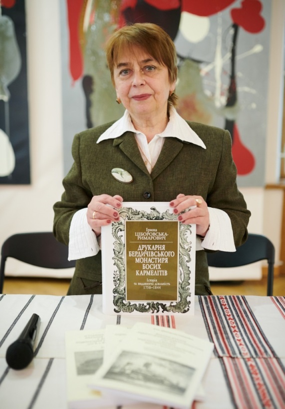 Днями в Музеї книги і друкарства України пройшла презентація двох книжок старшої наукової співробітниці відділу стародруків та рідкісних видань Національної бібліотеки країни імені В. І. Вернадського, кандидата історичних наук Ірини Ціборовської-Римарович, які нещодавно вийшли друком: «Друкарня Бердичівського монастиря босих кармелітів: історія та видавнича діяльність. 1758-1844» НАН України; Нац. б-ка України ім. В. І. Вернадського. – Київ: Академперіодика, 2019. – 652 с., 26 с. іл.; «Видання друкарні Луцького домініканського монастиря (1787-1836) у фондах Національної бібліотеки України імені В. І. Вернадського. Книгознавче дослідження. Попримірниковий опис» НАН України; Нац. б-ка України ім. В. І. Вернадського; Ін-т книгознавства. – Київ, 2020. – 131 с. : іл.