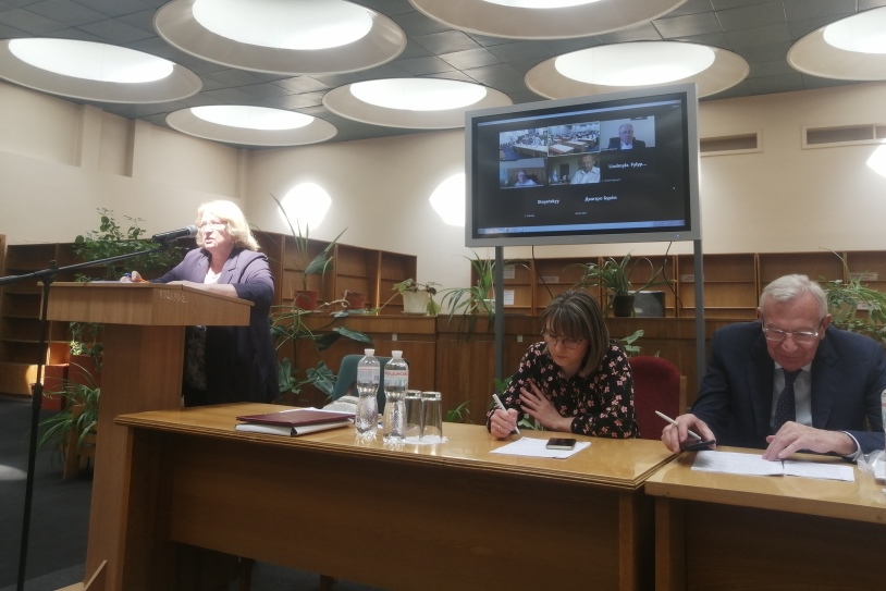 З доповіддю «Цифрова гуманітаристика – перспективний міждисциплінарний та інтегрований напрям розвитку бібліотечної науки та соціогуманітарних досліджень» виступила генеральний директор Національної бібліотеки України імені В.І. Вернадського член-кореспондент НАНУ Л.А. Дубровіна.