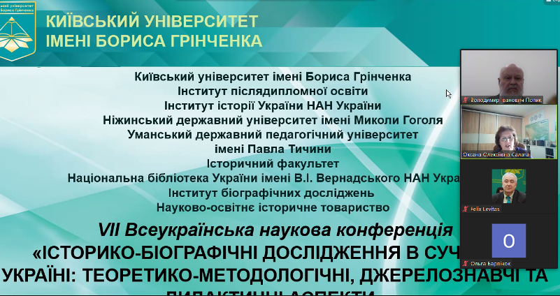 23 вересня 2022 року відбулась VІІ Всеукраїнська наукова конференція «Історико-біографічні дослідження в сучасній Україні: теоретико-методологічні, джерелознавчі та дидактичні аспекти», яка продовжила традицію започаткованих Київським університетом імені Бориса Грінченка щорічних конференцій з актуальних проблем соціогуманітарних досліджень. Цього року форум був присвячений теоретико-методологічним, джерелознавчим та дидактичним аспектам біографічних досліджень.