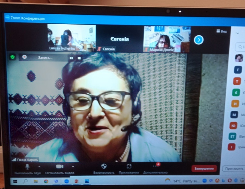 Докторка мистецтвознавства, професорка Прикарпатського національного університету імені В. Стефаника (Івано-Франківськ) Ганна Карась теж спілкувалася з учасниками секції онлайн. У доповіді «Цифрові бібліотеки Польщі – джерело для вивчення життєдіяльності діячів української музичної культури» вона ознайомила слухачів із різними фондами електронних бібліотек Польщі, де знаходиться інформація про тих українських діячів музичної культури, які працювали для зміцнення зв’язків українського й польського народів. Розповіла про документи та періодичні видання, що збагачують українське мистецтвознавство маловідомими фактами. У своїй доповіді Г. Карась наголосила на важливості електронних бібліотек.