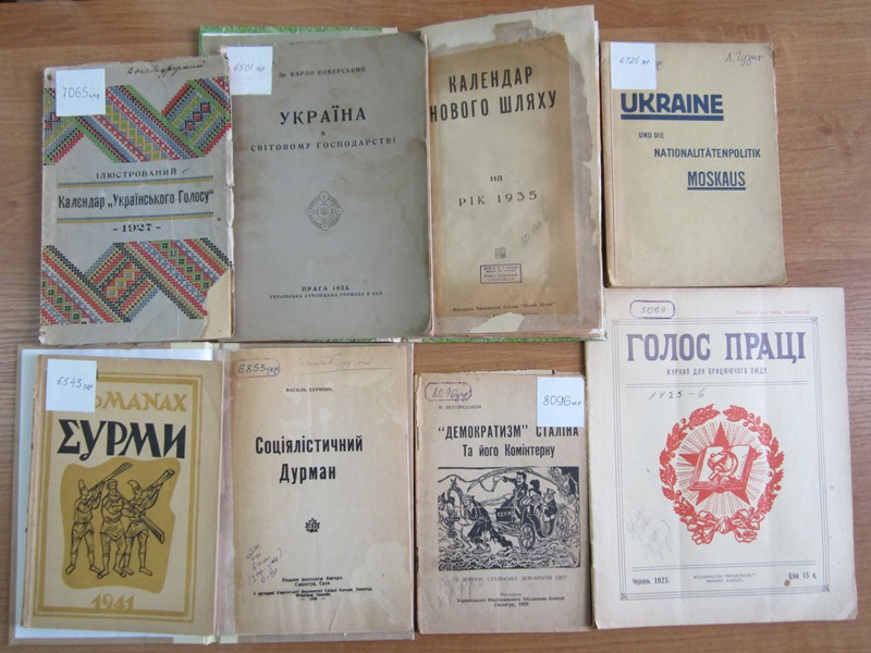 На виставці репрезентовано художню літературу, видану в діаспорі: твори Остапа Вишні, що висміюють радянські нововведення в культурній сфері (Калєндар Українського робітничого союза на рік 1931. Скрентон, 1930. С. 138–145. (1273 укр.), С. Ковбеля ( «Українізація» або «Адін народ, адін язик» // Ілюстрований калєндар «Українського голосу». Вінніпег, 1927. С. 54–59. (7065 укр.) тощо.