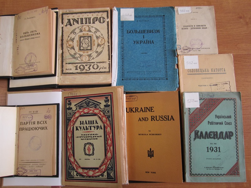 Виставка різнопланова і включає видання, що стосуються політики українізації, колективізації, репресій, голодоморів тощо. На виставці є матеріали, які розкривають статистичні дані про кількість населення, національний склад, мову спілкування за даними перепису 1926 року (Українська людність СССР / розвідки Т. Олесевича, О. Пителя, В. Садовського, О. Чубенка. Варшава, 1931 (1559 укр.), становище України в складі СРСР (Григоріїв В. Н. Підстави української незалежної політики. Детройт, 1939 (1719 укр.), (Martel R. Le probleme de l`Ukraine. Paris, 1938 (6970 укр.), господарство в УРСР, зовнішню торгівлю і першу п’ятирічку (Коберський К. Україна в світовому господарстві. Прага, 1933 (6501 укр.), період Соловків (Соловецька каторга: документи / ред. Л. Чикаленко. Варшава, 1931 (512 укр.), сталінський терор (Погорецький М. «Демократизм» Сталіна та його Комінтерну. Саскатун, 1939 (8096 укр.), болюче питання Кубані (Макаренко П. Л. З життя Кубані під комуністичною владою. Прага, 1927 (479 укр.), мовну політику (Смаль-Стоцький Р. Українська мова в Совєтській Україні. Варшава, 1936 (688 укр.), літературний та книговидавничий процеси (статті з журналу «Наша культура»).