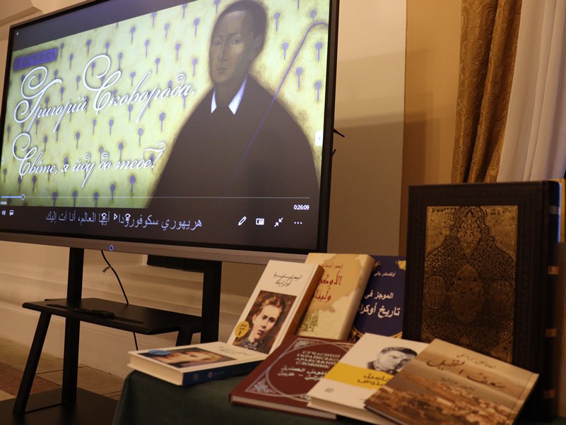 - Григорій Сковорода вважав, що світ ловив його, та так і не спіймав, але якась частинка світу все ж могла його знати і в далеких світах, і на сході, – зазначив на презентації Ігор Осташ. – Тож саме в ювілейний Сковородинський рік ми вирішили відзначити це 300-ліття й максимально популяризувати його ім’я. На початку року виник задум такого проєкту, до якого увійшли б книга перекладів арабською мовою основних його творів і біографія, а також фільм про нього для арабомовних глядачів, який би включав дуже важливі саме для них моменти: певні паралелі з арабською філософією, арабськими літераторами. І звичайно, для нас дуже важливо було, щоб арабський світ глибше пізнавав Україну, в цьому випадку через її видатного філософа й літератора Григорія Сковороду. І тут нам багато допомогла Національна бібліотека України імені В.І. Вернадського. Уся спадщина Сковороди зберігалась тут, була до наших послуг, і попри умови воєнного часу, повітряні тривоги і холод нам вдалося разом зі співробітниками протягом певного періоду максимально опрацювати першоджерела і все зробити для книги й для фільму.