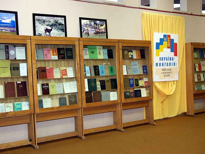 На книжково-інформаційній виставці експонувалося понад 700 од. зб. з фондів НБУВ: монографії, збірники наукових праць, журнали, щорічники, художня література, альбоми з репродукціями монгольських майстрів пензля; унікальні картографічні матеріали; нотні видання (вокальні твори та монгольські пісні).