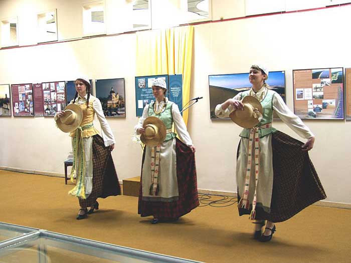 Члени громади литовців України привітали учасників науково-просвітницької акції литовським народним танцем "Кяпурінє" (танець з капелюшками).
