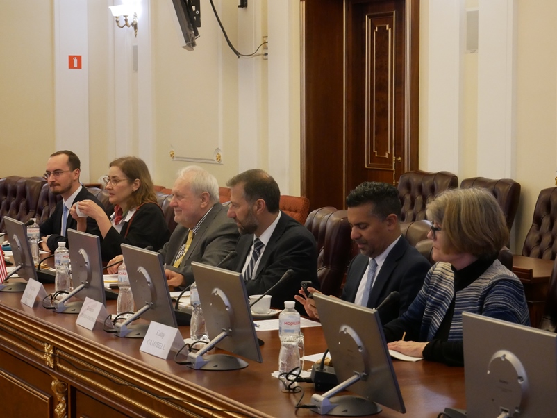 Гостями НБУВ були спеціальний радник президента Польської академії наук (ПАН) з питань співпраці з Україною, президент ПАН у 2015 - 2022 роках Єжи Душинський (Jerzy Duszynski), виконавчий директор Відділу політики та глобальних справ Національної академії наук США Вон Турекян (Vaughan Turekian) та керівник підрозділу з питань глобального сталого розвитку Відділу політики та глобальних справ НАН США Франклін Карреро-Мартінес (Franklin Carrero-Martinez). З ними зустрілись віцепрезидент Національної академії наук України академік НАНУ Сергій Пирожков, генеральний директор Національної бібліотеки України імені В.І. Вернадського, член-кореспондент НАНУ Любов Дубровіна та заступник генерального директора НБУВ з наукової роботи Юрій Ковтанюк.