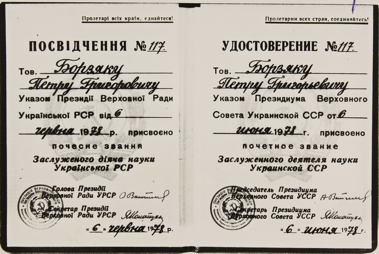 18 квітня 1961 р. П. Г. Борзяка обрано членом-кореспондентом АН УРСР.