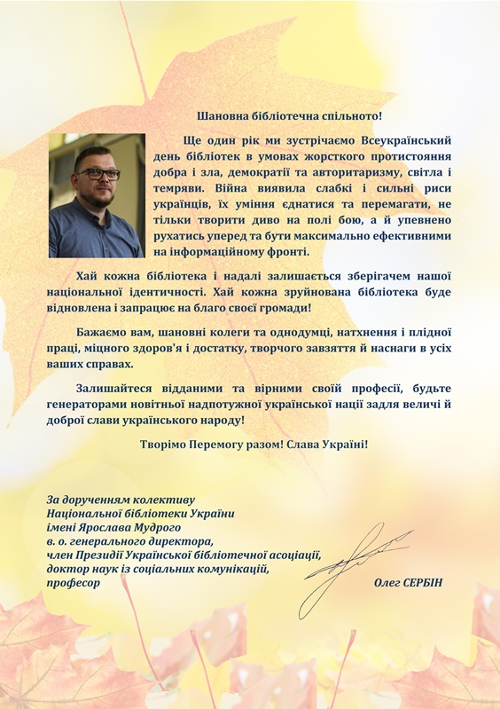 Привітання з нагоди Всеукраїнського дня бібліотек