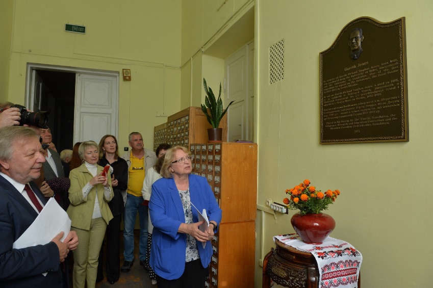 Заходи розпочалися з урочистого відкриття меморіальної дошки на честь Ґарета Джонса. Пам’ятну дошку встановлено на 3-му поверсі в корпусі бібліотеки по вулиці Володимирській, 62 біля читальної зали відділу образотворчих мистецтв. Генеральна директорка Національної бібліотеки України імені В. І. Вернадського Любов Андріївна Дубровіна зазначила, що це місце було обрано не випадково, адже відвідувачами цієї читальної зали часто є читачі, науковці та дослідники, які звертаються до теми Голодомору та фондів зарубіжної україніки НБУВ.