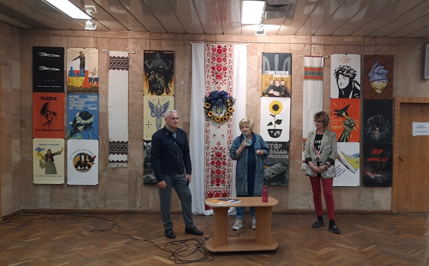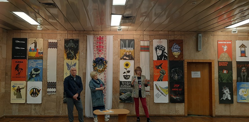 Відкриваючи виставку, завідувачка відділу соціокультурної діяльності НБУВ Антоніна Петрівна Шеремет повідомила, що українську плакатну групу «Креативний супротив» було створено вже за тиждень після повномасштабного російського вторгнення (3 березня 2022 року) викладачами і студентами двох київських вищих навчальних закладів –Київського національного університету культури і мистецтв (КНУКІМ) і Київського університету культури (КУК).