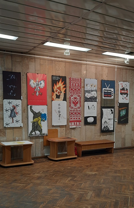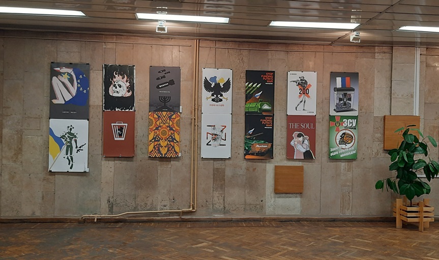 У межах заходів міжнародної конференції «Бібліотека. Наука. Комунікація. Актуальні питання збереження та інноваційного розвитку наукових бібліотек» в НБУВ 4 жовтня відкрилась цікава виставка. А точніше – презентовано плакатний проєкт дизайн-групи «Креативний супротив». Свідчення креативності починається вже з назви – «На сніданок була війна».
