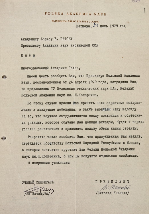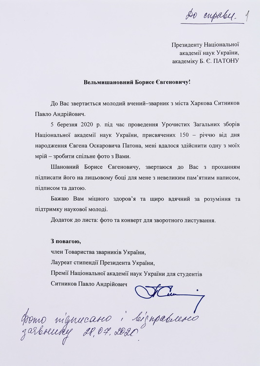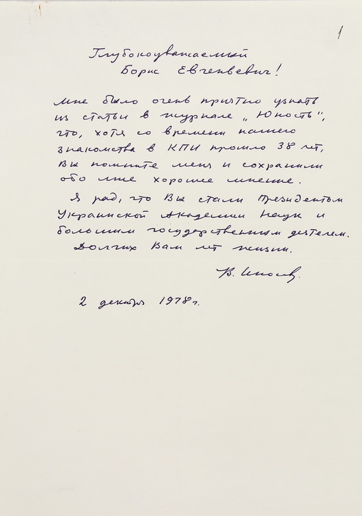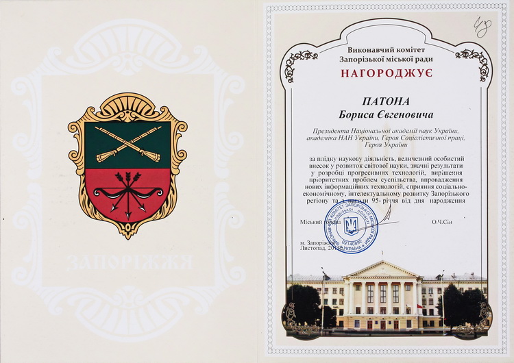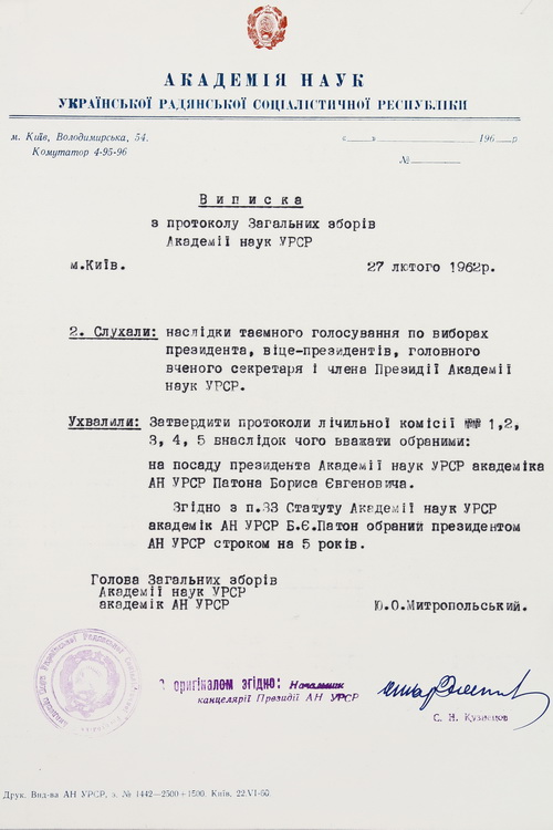 Виставка архівних документів з нагоди 105-річниці від дня народження Б. Є. Патона (27.11.1918 – 19.08.2020) – академіка НАН України, президента НАН України (1962–2020)