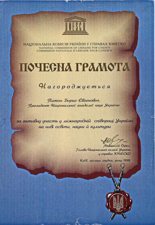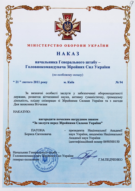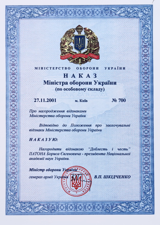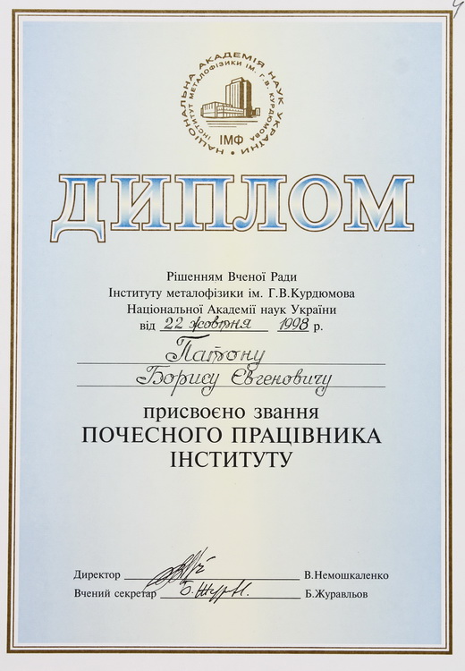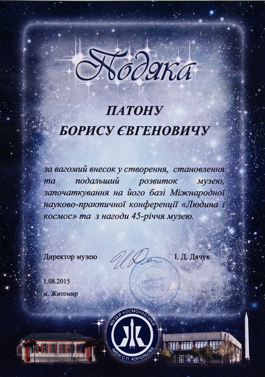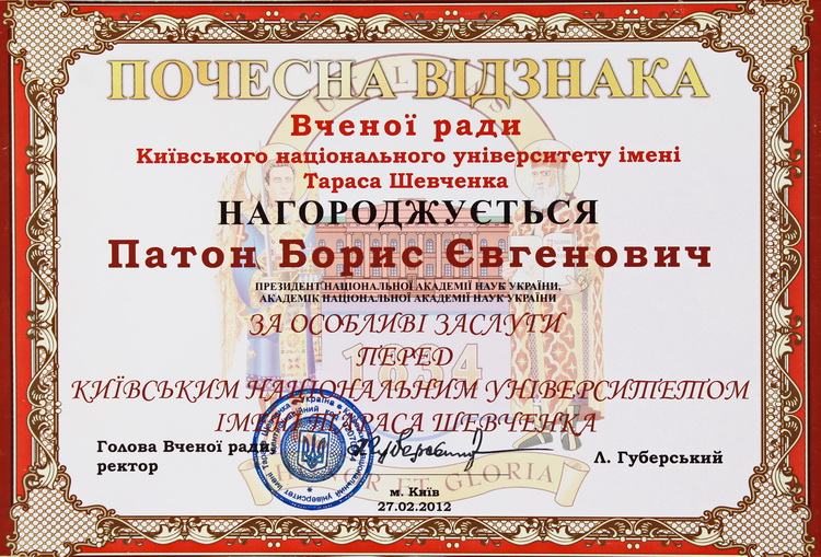 почесний член Американського товариства зварників (1978), Римського клубу (1989) і президент Української асоціації Римського клубу (1990), Британського інституту зварювання та зварювального товариства (1993), Міжнародного товариства з матеріалознавства (1994), Американського товариства інформації про матеріали (1994), Міжнародної академії астронавтики (1997, США), Німецького зварювального товариства (1997), Міжнародної організації «Інститут інженерів з електротехніки та електроніки» (ІЕЕЕ) (2020);