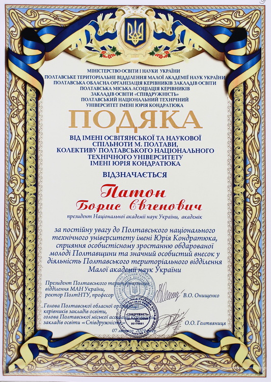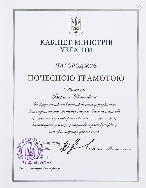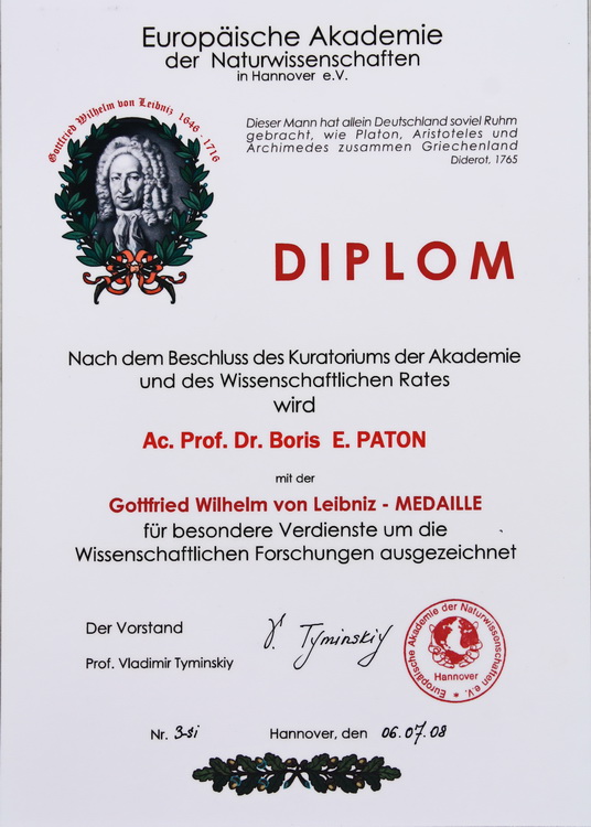 Б. Є. Патона був обраний президентом та членом багатьох академій, асоціацій та наукових товариств, а саме: