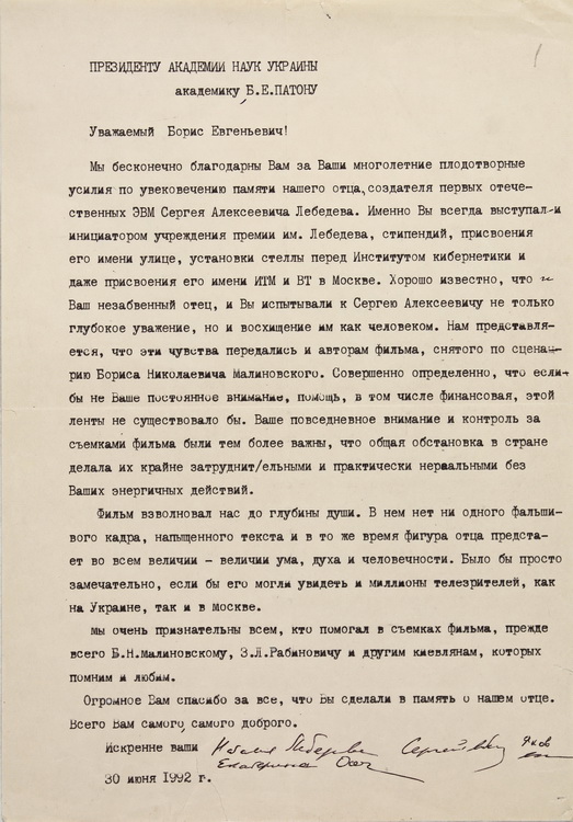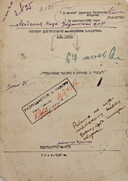 Виставку з нагоди з нагоди 105-річниці від дня народження Б. Є. Патона підготовлено за архівними документами з особового фонду № 35 «Патон Борис Євгенович (27.11.1918 – 19.08.2020) – академік НАН України за спеціальністю «електрозварювання» (1958), президент НАН України (1962–2020)», що зберігається в Інституті архівознавства НБУВ.