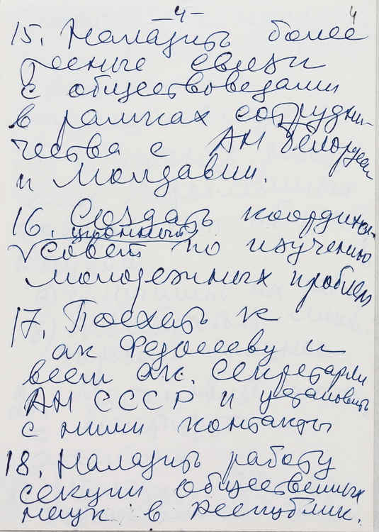 Експонуються документи, що ілюструють діяльність Б. Є. Патона як президента НАН України, директора Інституту електрозварювання ім. Є. О. Патона та авторитетного вченого-зварювальника. Це нотатки з пропозиціями про покращення роботи академії, завданнями для колег, документи про наукові відрядження, запрошення вченому до участі у різних наукових та громадських заходах та ін.