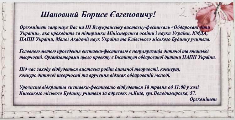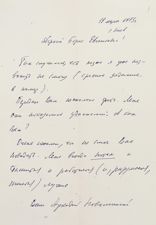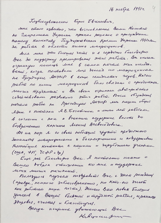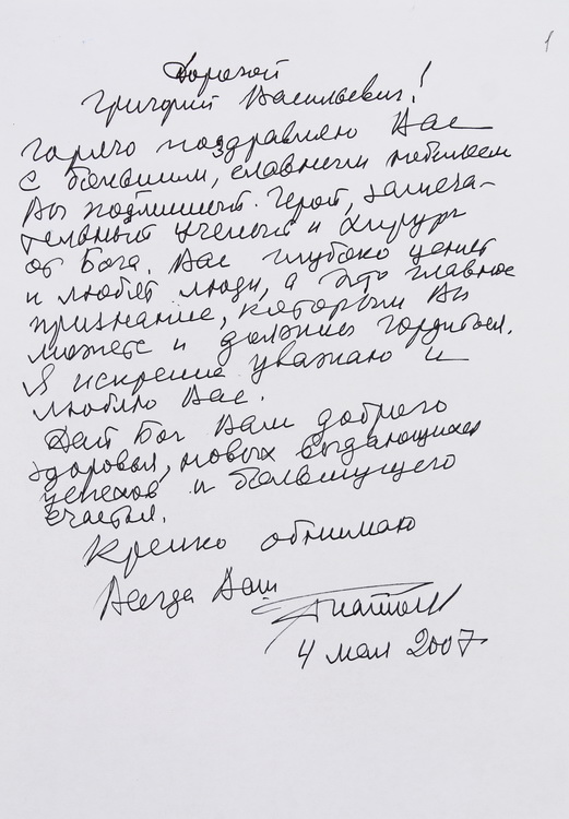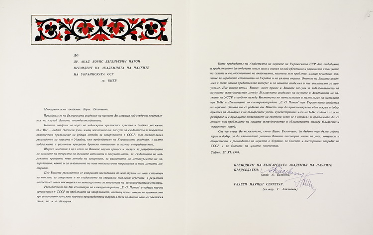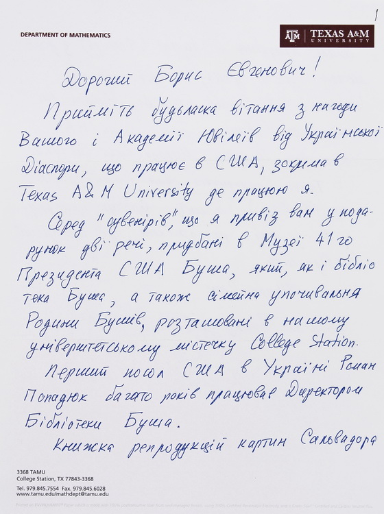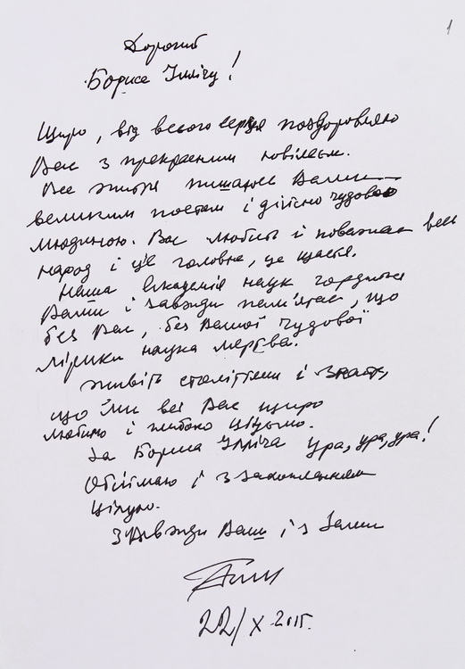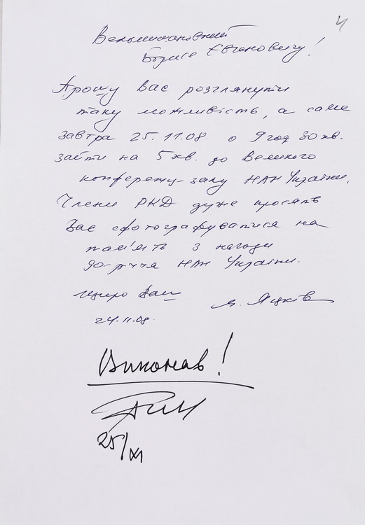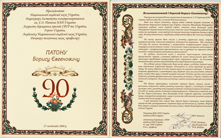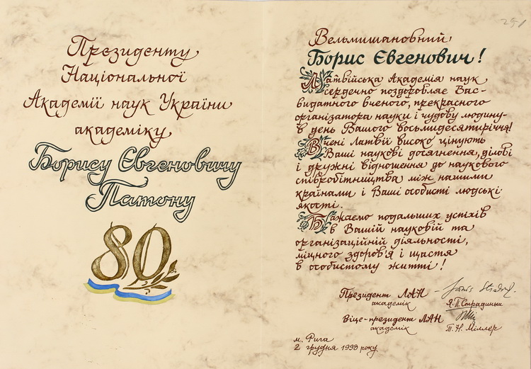 У великому обсязі в архіві вченого зберігається вітальна кореспонденція з приводу його особистих ювілеїв, знаменних дат в історії НАН України, державних, релігійних та професійних свят від українських та іноземних колег, академічних установ, державних підприємств та закладів вищої освіти. В залежності від часу створення ці вітання виконані в різній техніці: від каліграфічних рукописів до комп’ютерної графіки. До огляду відібрано невелику часточку ювілейних вітань.