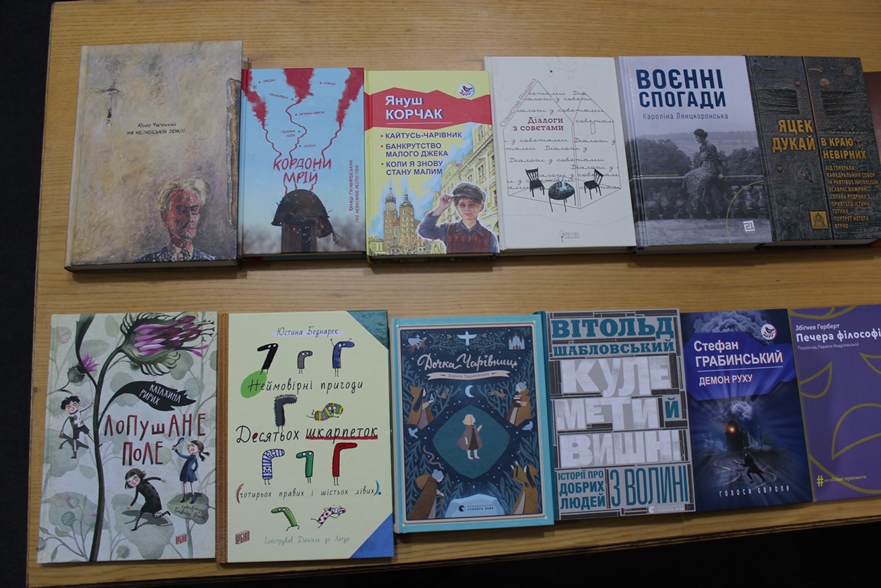 Серед отриманих книг: історичні романи Генріка Сенкевича (1846-1916) «Quo vadis», «Вогнем і мечем», «Потоп», «Пан Володийовський»; п'єса «Печера філософів» польського поета, есеїста і драматург Збіґнєва Герберта (1924-1998); «Печера філософів»; книга «Воєнні спогади. 22 вересня 1939 - 5квітня 1945» відомої польської діячки, історикині і мистецтвознавиці Кароліни Лянцкоронської (1898-2002); «Імператор. Шахіншах» найвидаванішого у світі польського автора, лавреата численних міжнародних премій Ришарда Капусцінського (1932-2007); збірка оповідань жахів «Демон руху» Стефана Грабинського (1887-1936); збірка творів «В краю невірних» відомого сучасного польського письменника-фантаста Яцека Дукая (1974 р. н.) ; «Кордони мрій. Про невизнані республіки» польського репортажиста, письменника, мандрівника та експерта з Центральної та Східної Європи Томаша Гживачевського; «На нелюдські землі» польського художника і письменника Юзефа Чапського (1896-1993); «Демон руху» польськомовного українського за походженням письменника Стефана Грабінського (1887-1936); «Діалоги з совєтами» Станіслава Вінценза (1888-1971); «Кулемети й вишні. Історії про добрих людей з Волині» відомого польського репортера та письменника Вітольда Шабловського (1980 р. н.).
