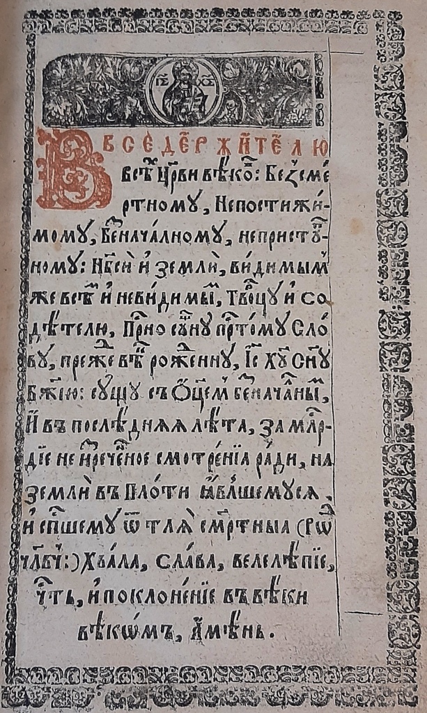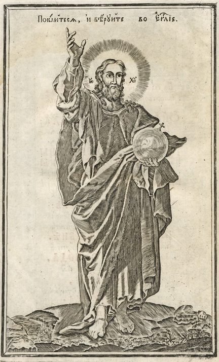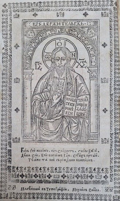 Іконографія Христа, використана в якості фронтиспісного зображення на зворотах титульних аркушів українських перевидань Євангелій, демонструє тривалу продуктивність та різноманіття образотворчого потенціалу цього образу. Перше львівське видання Євангелія 1636 р. на звороті титульного аркуша експлікує образ Спаса Вседержителя з книгою, доповнений текстом молитви-славлення (іл.5). Образ Спаса Вседержителя повторно актуалізується в оформленні звороту титульного аркуша києво-печерських Євангелій 1746 р. і 1773 р. Сторінковий мідерит із зображенням Христа, що тримає в руках земну кулю, доповнено написом: «Покайтеся і Віруйте во Євангеліє» (Іл. 6, 7). Цікаво, що текст цього напису, за допомогою шрифтових засобів та виливних прикрас, сформував окрему художню композицію для оформлення звороту титульного аркуша у виданні Євангелія 1733 р. друкарні Києво-Печерської лаври (Іл. 8).
