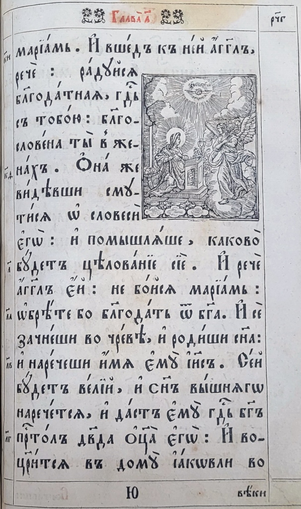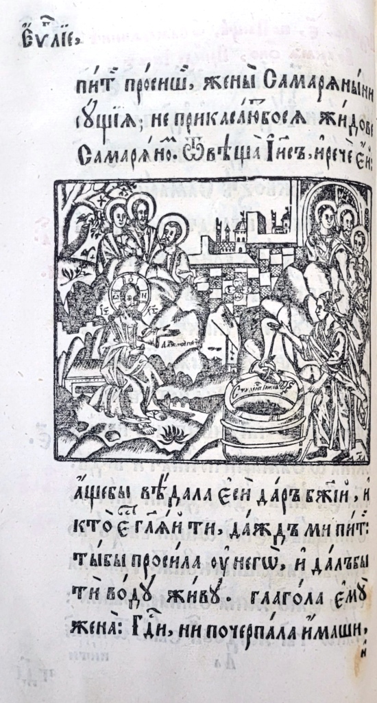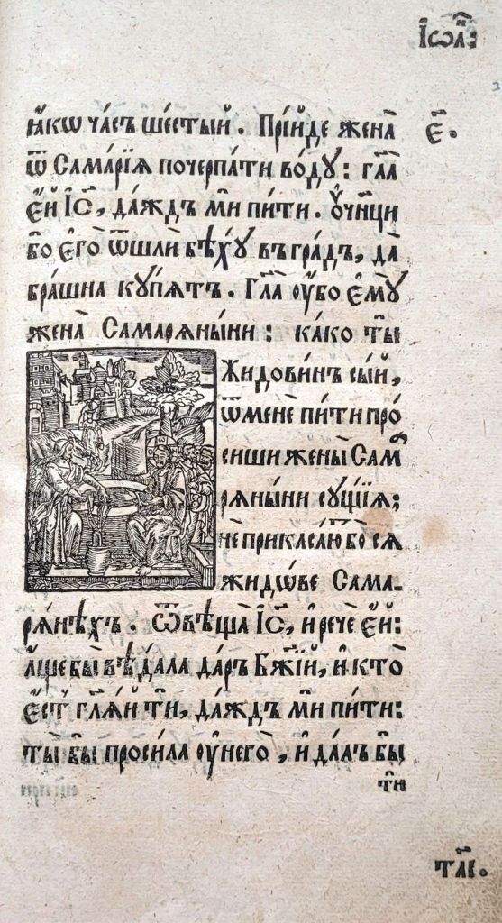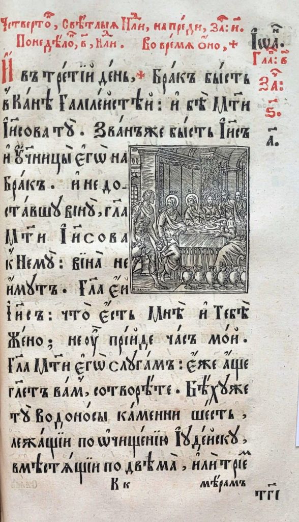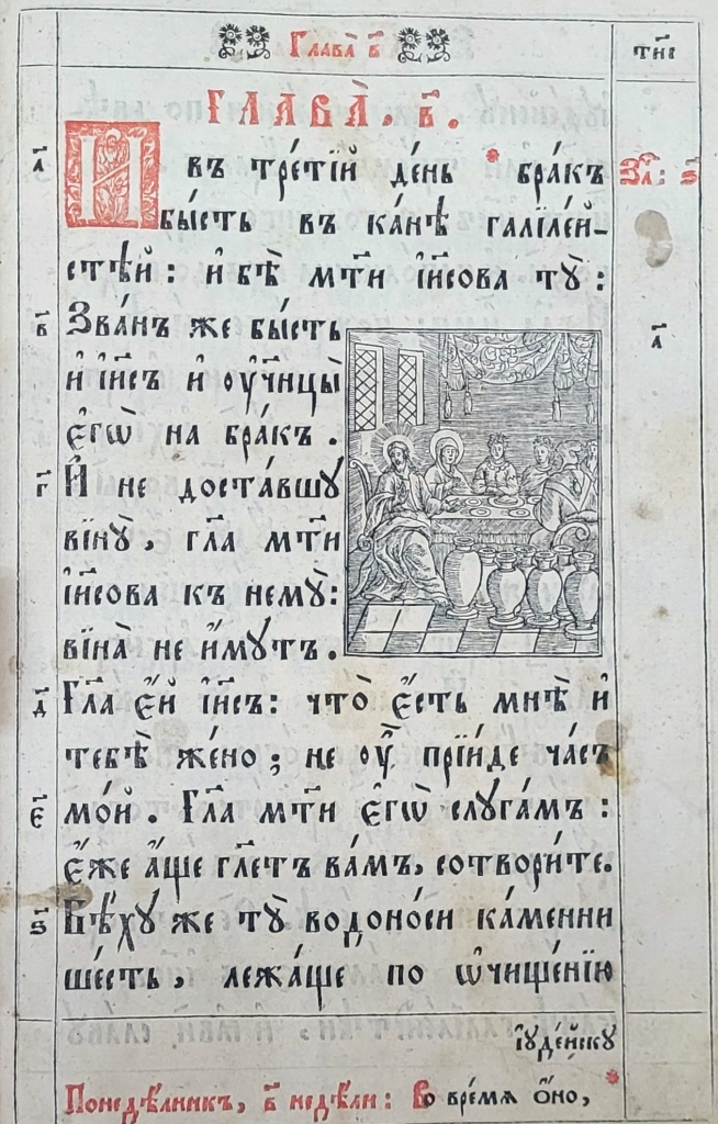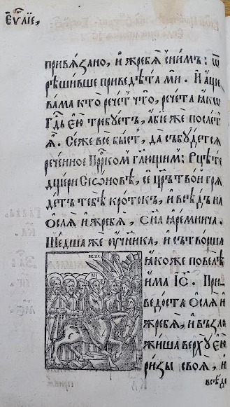 На матеріалі ілюстрацій до текстових частин українських Євангелій XVII–XVIIІ ст. цікаво простежити традицію передання мовою книжкової графіки євангельських сюжетів Благовіщення (Іл.19–23), Різдва Христового (Іл.24–26), Обрізання (Іл.27–29), Хрещення (Іл.30–33), чуда перетворення води на вино (Іл. 34–36), порятунку корабля від бурі (Іл. 37–38), притчі про сіяча та митаря і фарисея, в ілюстраціях до яких Христа зображено в якості оповідача (Іл.39, 40), оповіді про Ісуса і самарянку (Іл.41–43), входження в Єрусалим (Іл.44–47) та Розп’яття (Іл.48–50).