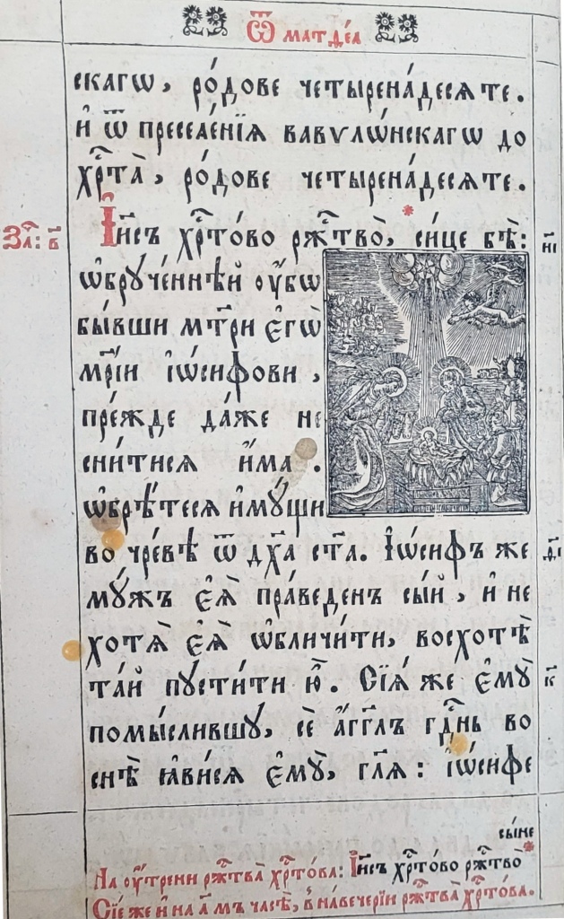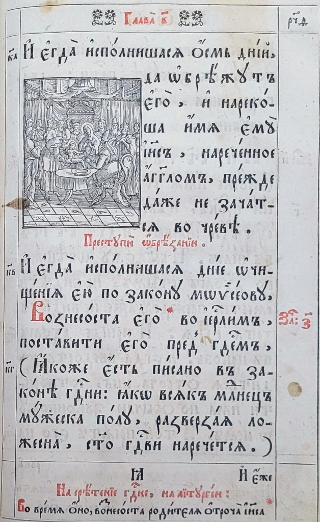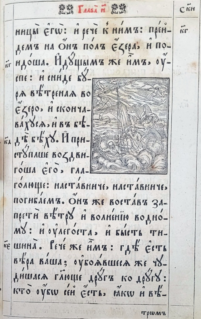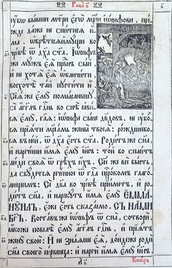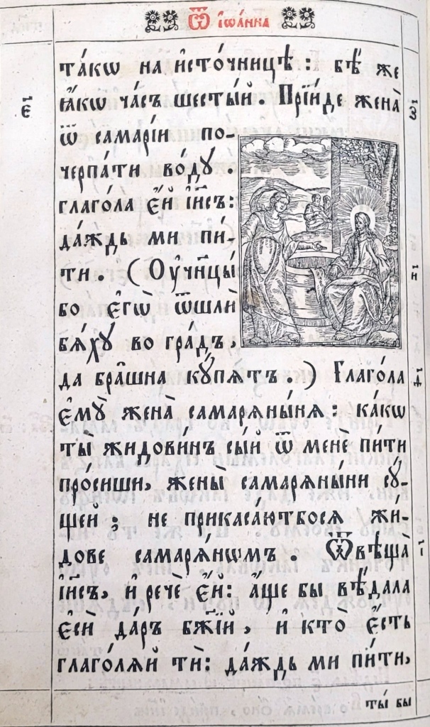 На матеріалі ілюстрацій до текстових частин українських Євангелій XVII–XVIIІ ст. цікаво простежити традицію передання мовою книжкової графіки євангельських сюжетів Благовіщення (Іл.19–23), Різдва Христового (Іл.24–26), Обрізання (Іл.27–29), Хрещення (Іл.30–33), чуда перетворення води на вино (Іл. 34–36), порятунку корабля від бурі (Іл. 37–38), притчі про сіяча та митаря і фарисея, в ілюстраціях до яких Христа зображено в якості оповідача (Іл.39, 40), оповіді про Ісуса і самарянку (Іл.41–43), входження в Єрусалим (Іл.44–47) та Розп’яття (Іл.48–50).