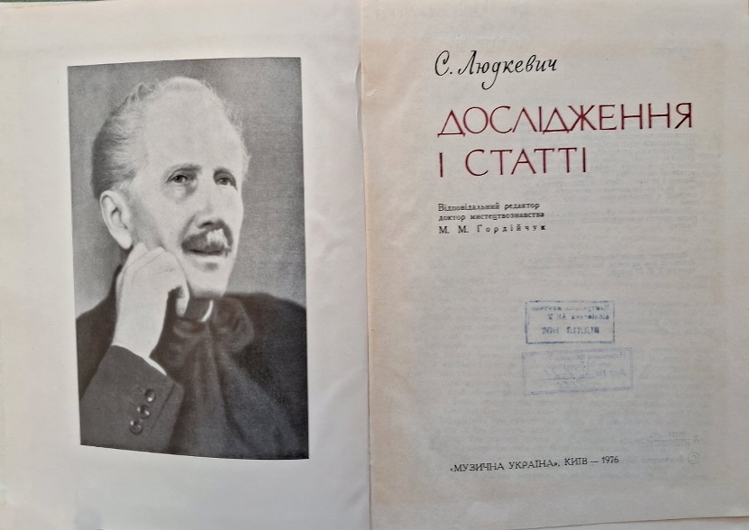 Людкевич – автор багатьох музикознавчих праць. Основна їх тематика: походження музики, зв’язок професійної музики з фольклором, поняття національного мистецтва, взаємозв’язок музики та слова, педагогічні засади та українська традиція музичного шкільництва, огляд тогочасного музичного життя і творчості [2, с. 332]. Серед них – збірка праць «Дослідження і статті». [Фото 10]