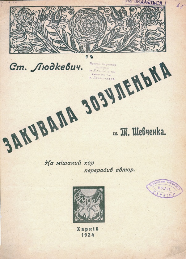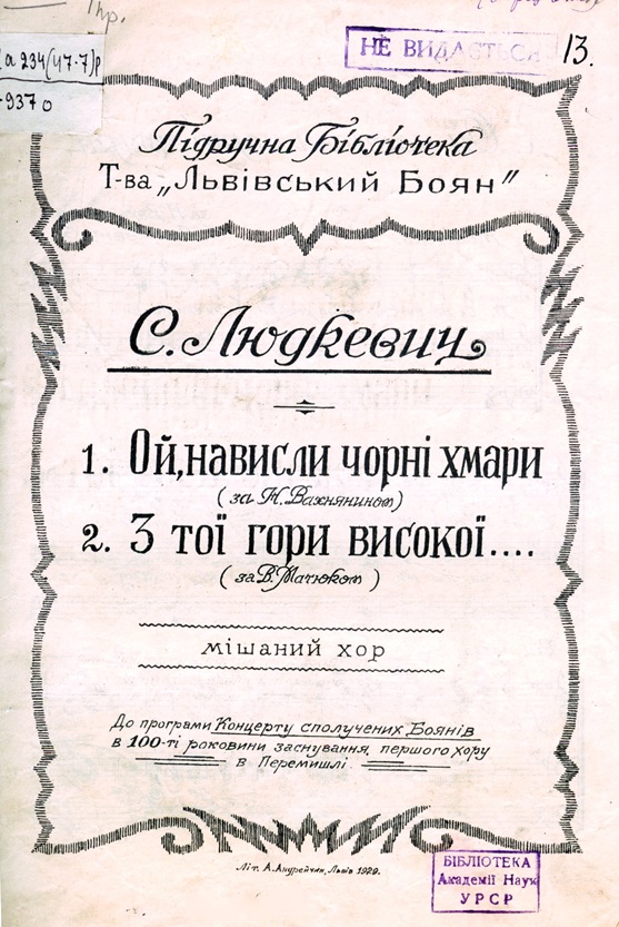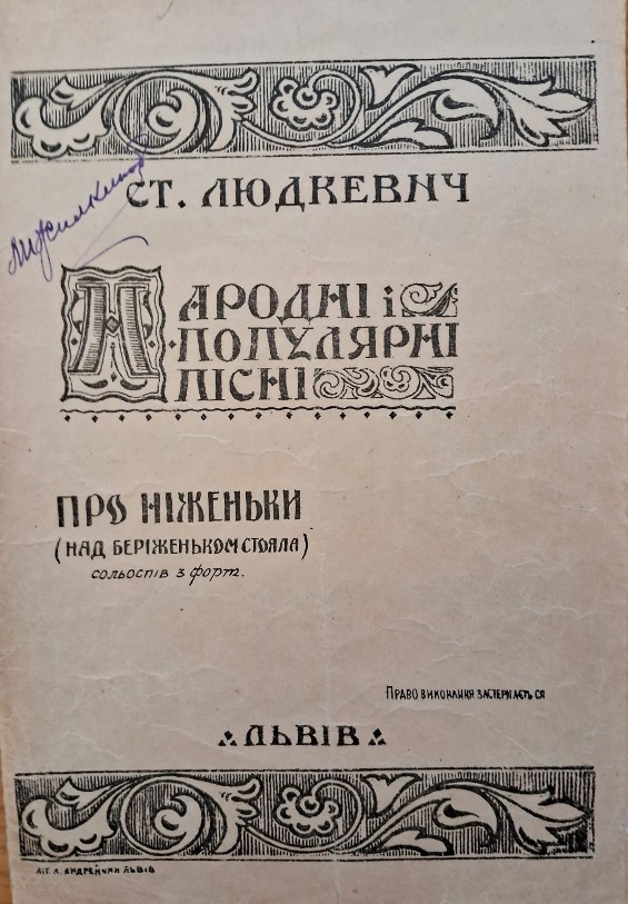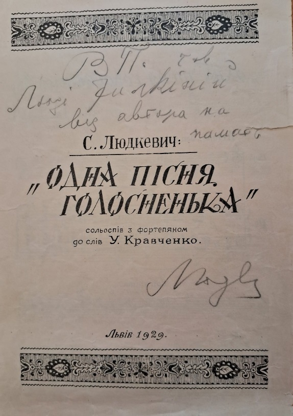 У відділі музичних фондів НБУВ зберігаються раритетні видання його творів. Заслуговують на увагу читачів та знавців творчості Людкевича наступні нотні видання: «Закувала зозуленька» [Фото 14] та «Піду від Вас» [Фото 11].