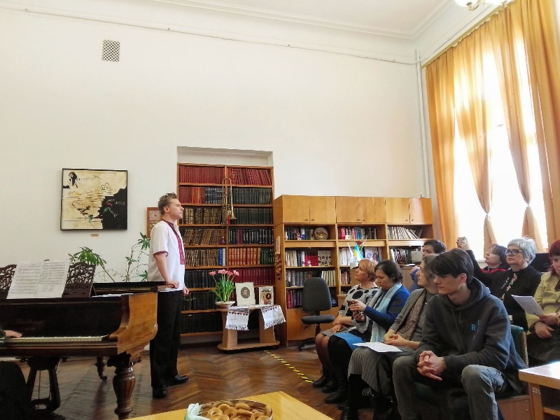 Завідувачка відділу музичних фондів Лариса Івченко розповіла гостям про книгу «Музична Шевченкіана у фондах Національної бібліотеки України імені В. І. Вернадського», в якій міститься систематизована інформація про друковані та рукописні музичні твори, народні пісні та їхні обробки на тексти великого українського поета Тараса Шевченка, а також музичні твори, написані за мотивами його творчості або присвячені поетові.