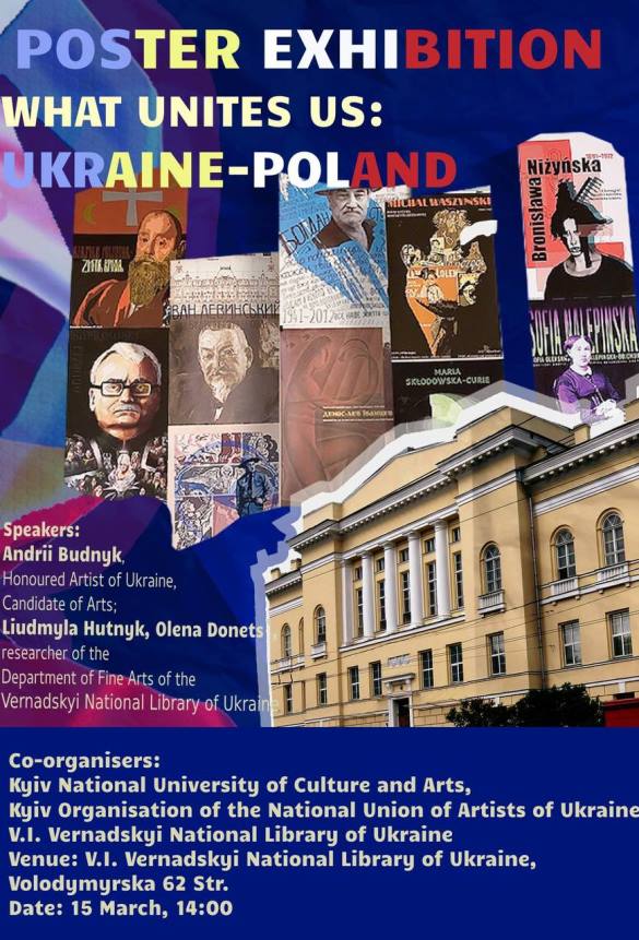Олена Донець, наукова співробітниця відділу образотворчих мистецтв Інституту книгознавства НБУВ розповіла про перші виставки плакатів, що проходили в приватній галереї у Кракові та у залах Яґеллонського університету. Польські колеги були здивовані тим, що у такий складний для країни час студенти не лише опановують техніку плаката, а й активно творять, організовують виставки. Дивлячись на плакати, відчуваєш, що вони створені не за чиїмось замовленням, а від душі. Проєкт «Те, що нас об’єднує...» представляє історичні постаті, спільні для обох народів, пропонує по-новому поглянути на видатні імена, згадати історію, повернути історичну пам’ять, зазначила вона.
