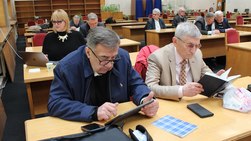 Ряд керівників наукових установ взяли участь у обговоренні питань та виступили з доповідями. Учасники зібрання обговорили доповідь В.А. Смолія, виступи і затвердили результати наукової роботи установ Відділення історії, філософії та права НАНУ за 2023 рік.