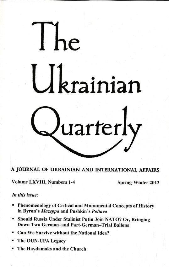 Bohdan Bochan: “Phenomenology of Critical and Monumental Concepts of History in Byron’s Mazeppa and Pushkin’s Poltava”, in: “The Ukrainian Quarterly” – A Journal of Ukrainian & International Affairs – since 1944, Vol. LVXIII, Nr 1- 4, Spring-Winter 2012, рр. 6-32, New York – USA.