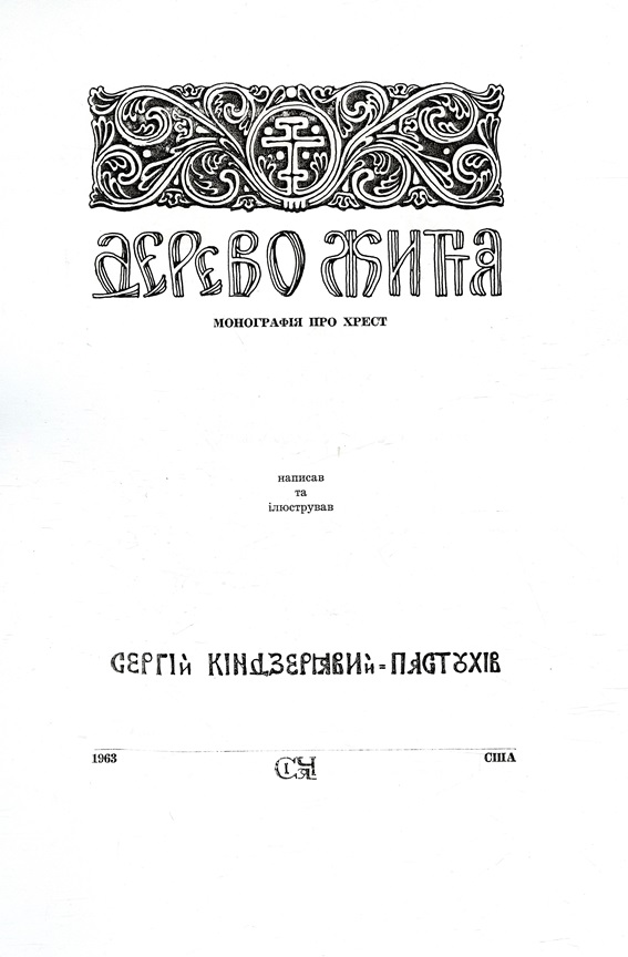Кіндзерявий-Пастухів Сергій: «Дерево життя. Монографія про хрест» [Зброшурований збірник копійованих найважливіших витягів з монографії "Дерево життя", Нью-Йорк: вид-во «Сіяч», 1963, також ілюстрацій до тексту]. Книжка, як зазначає її автор, видана в тридцяту річницю "каїнового гріха" (Голодомору 1933 р. в Україні).