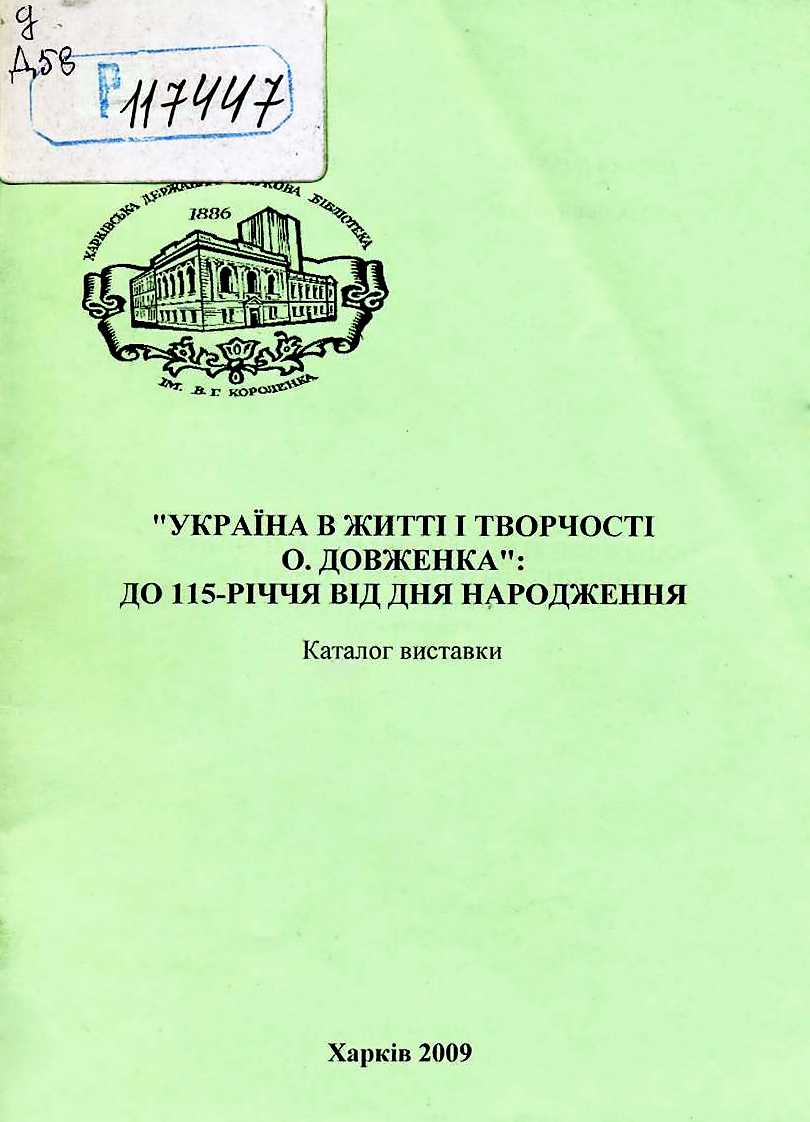 Шифр НБУВ: Р117447; ВНБІ: д Д58