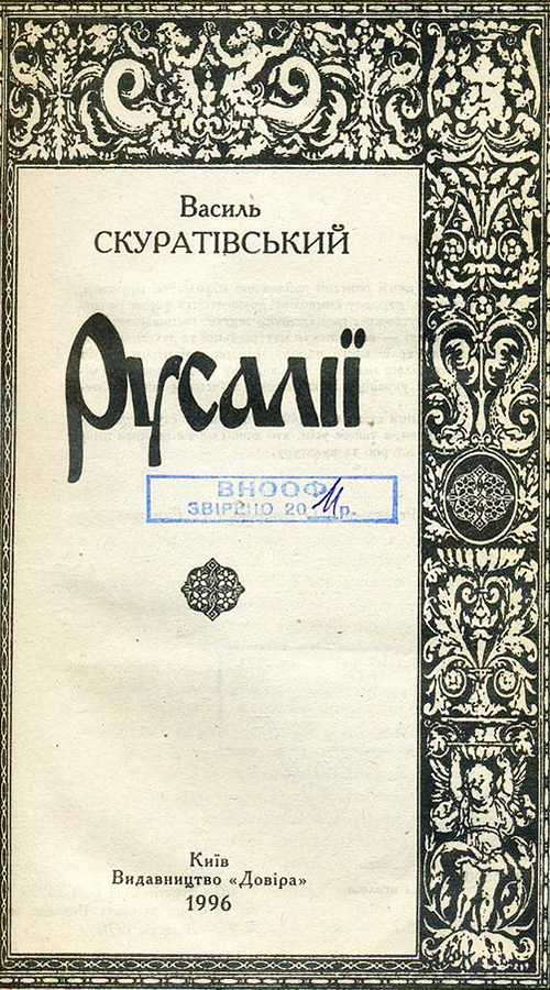12. Русалії / Василь Скуратівський. – Київ : Довіра, 1996. – 734 с.
