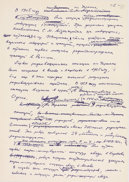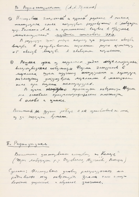 Експозиція розпочинається добіркою наукових праць О. Я. Усикова. Представлено наукову статтю, в якій висвітлено особливості нової генерації магнетронів, винайдених вченим – «Переривчасті коливання в магнетроні з розділеним анодом» (1936).