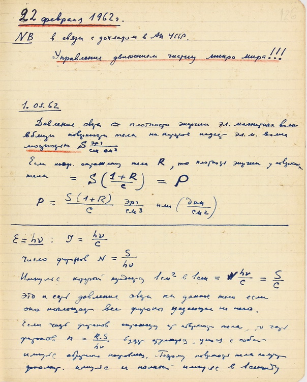 Цікавою є доповідь, виголошена на засіданні Президії АН УРСР – «Управління рухом частинок мікросвіту» (1962).