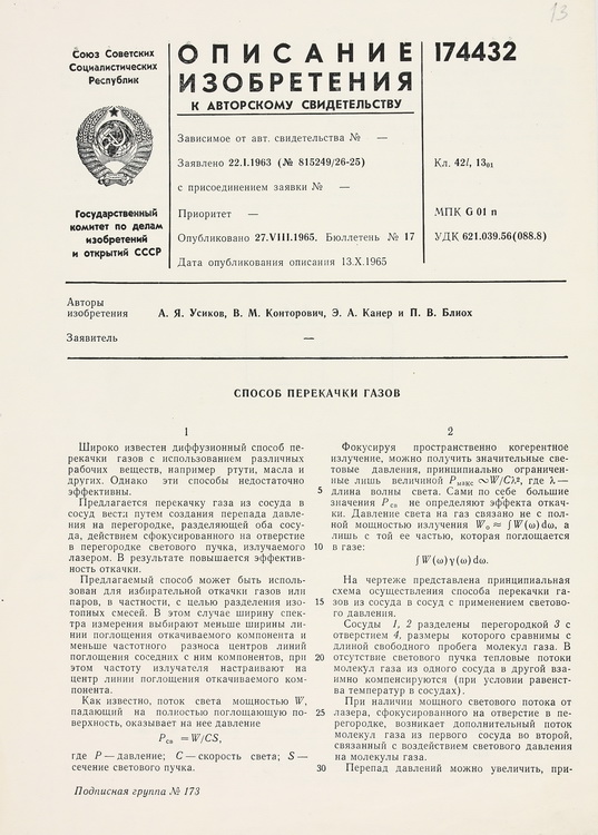В експозиції виставки представлено авторське свідоцтво на винахід – «Спосіб перекачування газів» (1965).