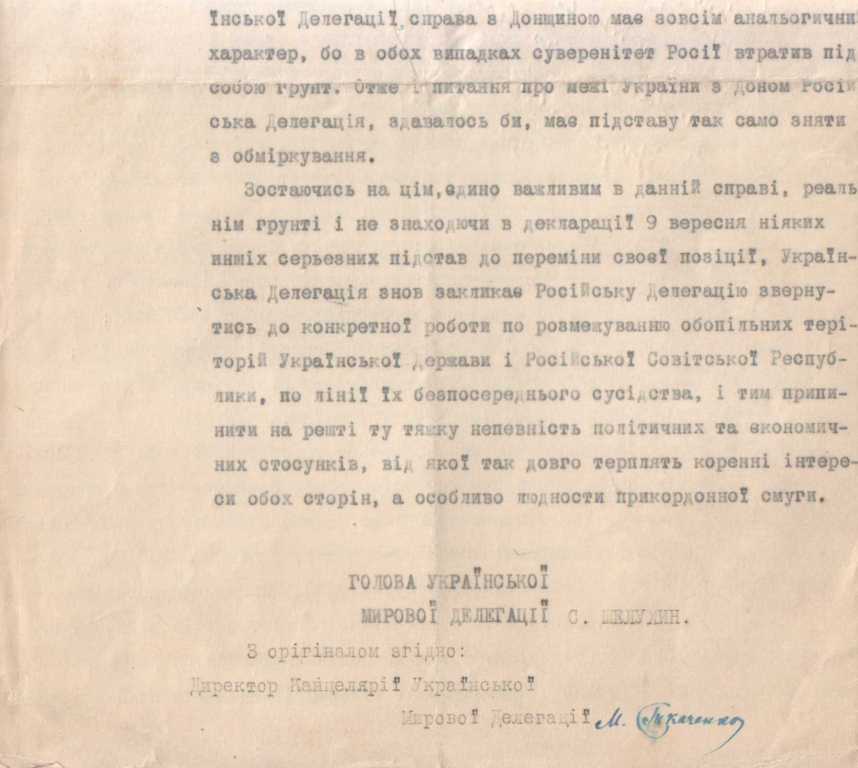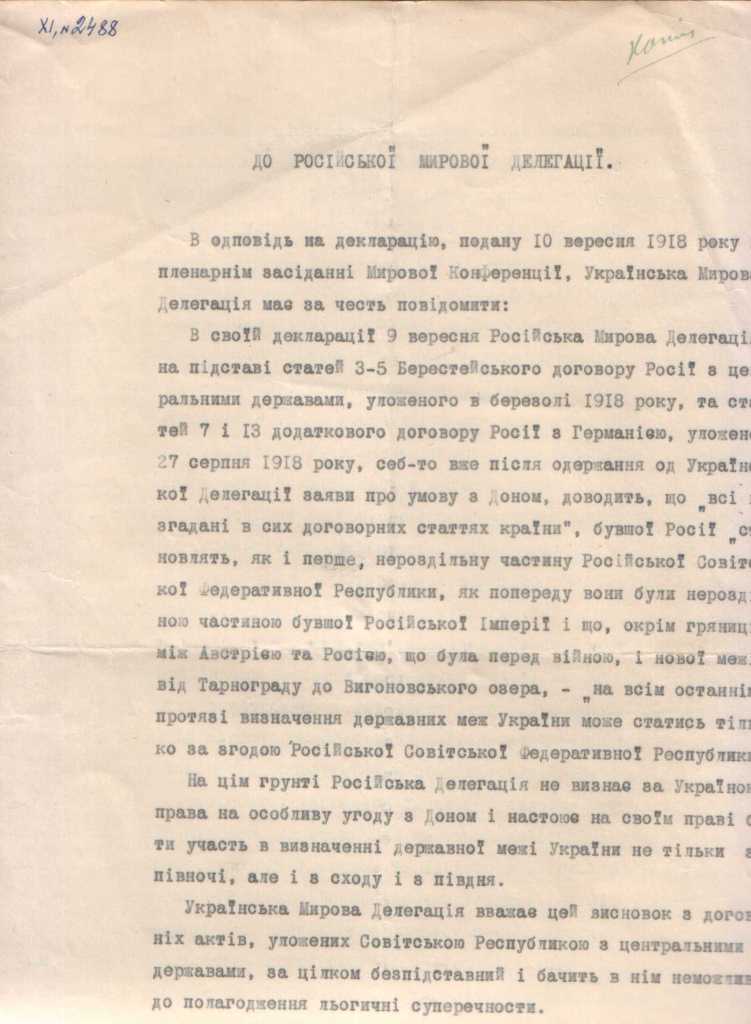 58–59. Шелухин С.П. Декларація української мирової делегації – до російської мирової делегації в справі розмежування території Української Держави і російської соціалістичної республіки. [Київ, 1918 р.] (ІР НБУВ, ф. ХІ, од. зб. 2488)