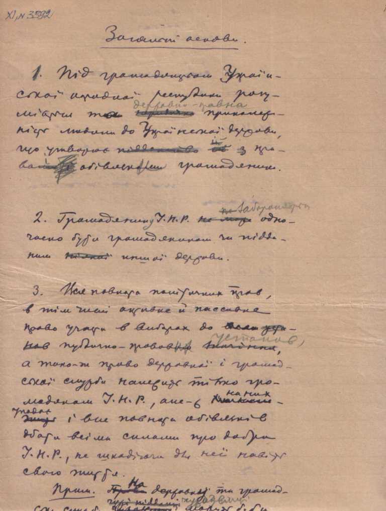 62. Шелухин С.П. Проєкт Закону про громадянство Української Народної Республіки. [Київ, 1918 р.] (ІР НБУВ, ф. ХІ, од. зб. 3392)
