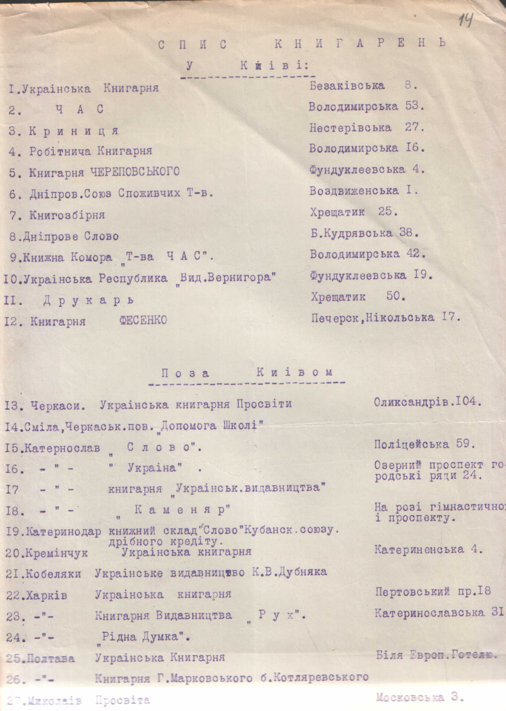 70. Реєстр часописів, що виходять на Україні. [Київ, 1918 р.] (ІР НБУВ, ф. ХІ, од. зб. 3487)