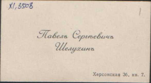 16. Візитівка Сергія Павловича Шелухина (ІР НБУВ, ф. ХІ, од. зб. 3508)