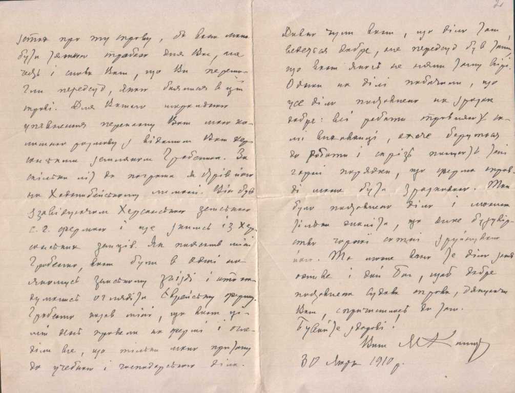 43. Комаров Михайло Федорович – Шелухину Сергію Павловичу. Лист. Одеса, 30 березня 1910 р. (ІР НБУВ, ф. ХІ, од. зб. 1020)