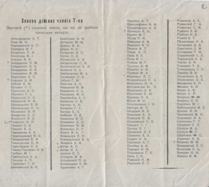 21. Список дійсних членів Одеського відділу Товариства «Просвіта». Одеса, 20 січня 1905 р. (ІР НБУВ, ф. ХІ, од. зб. 2239)