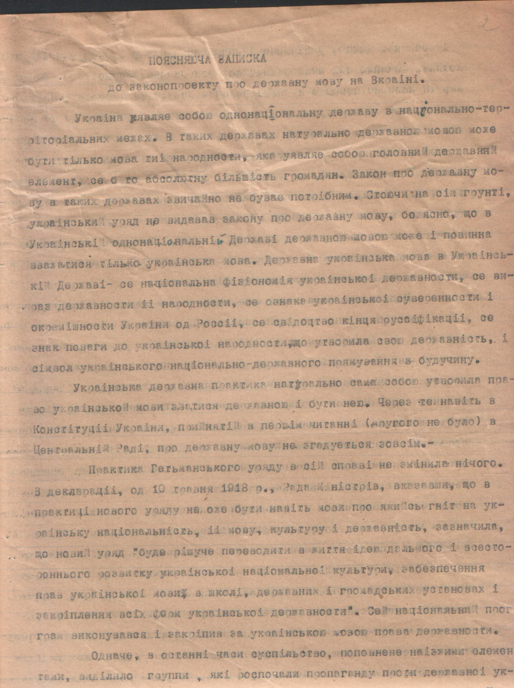 64. Шелухин С.П. Пояснювальна записка до законопроєкту про державну мову в Україні [Київ, 1918 р.] (ІР НБУВ, ф. ХІ, од. зб. 3447)