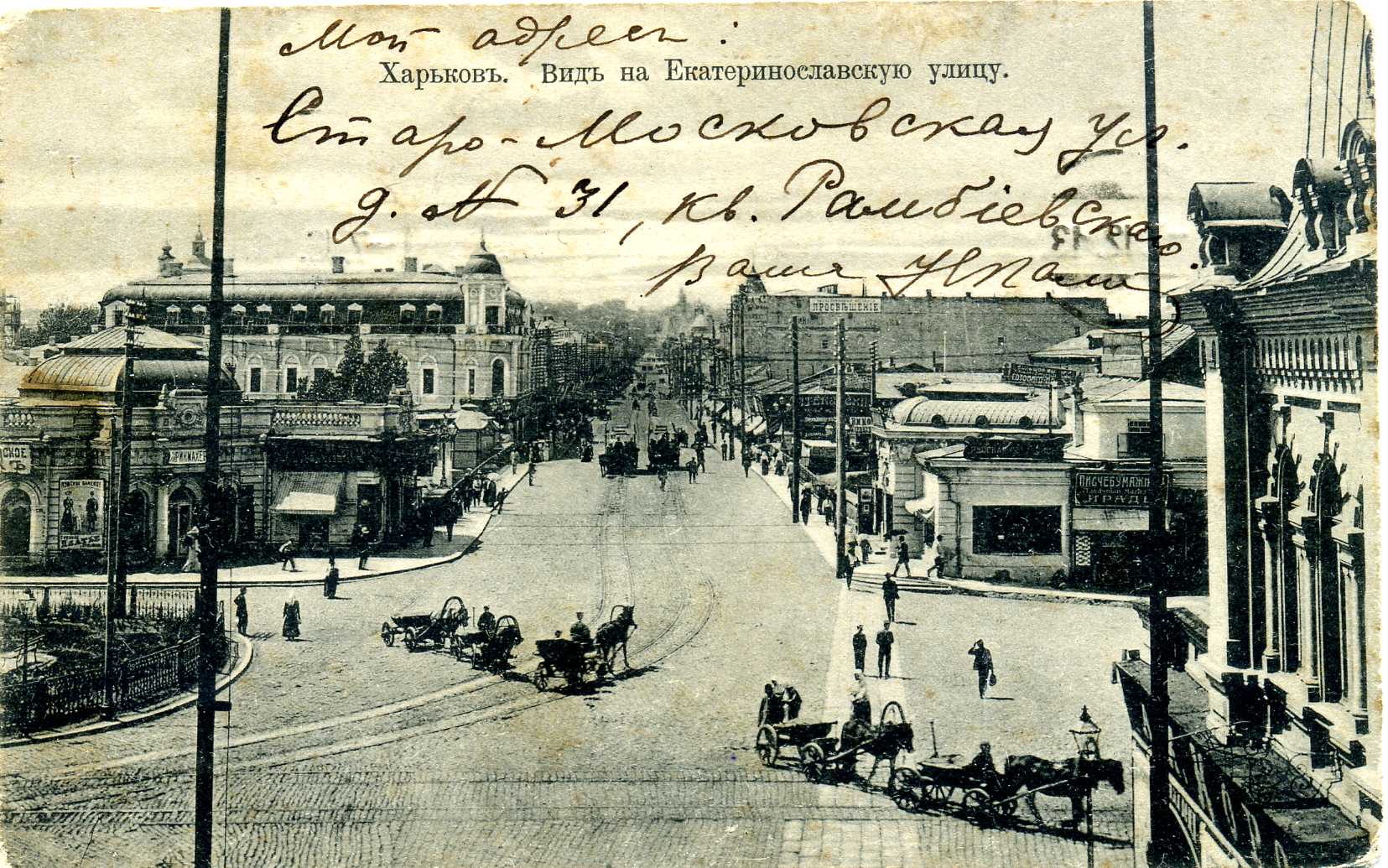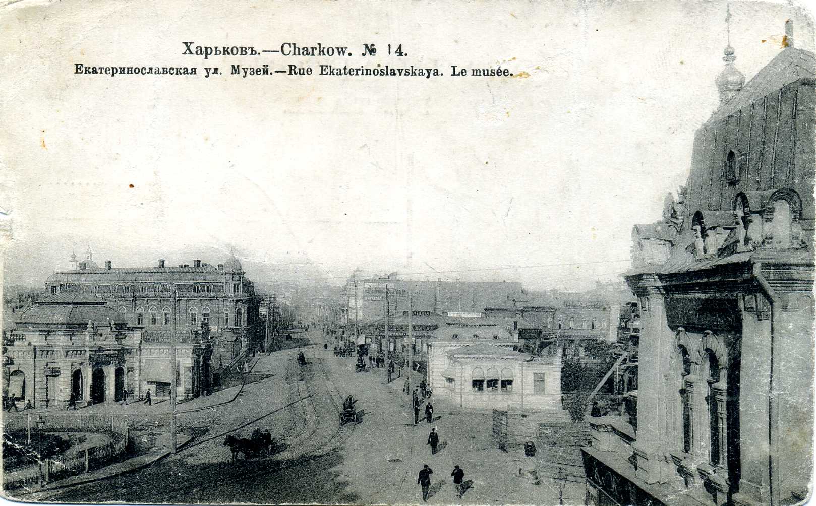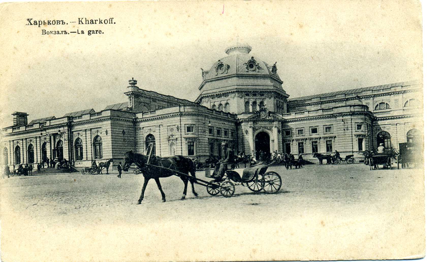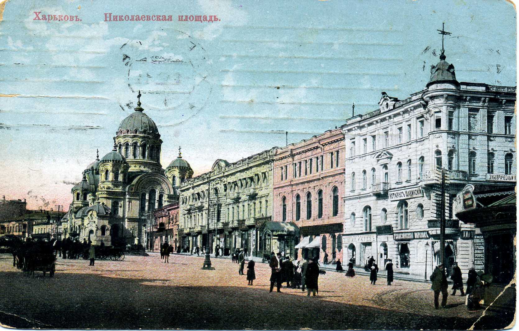 Своєрідний екскурс в історію улюбленого багатьма, славнозвісного міста Харкова початку ХХ ст. можна здійснити, переглянувши невеличку збірку поштових листівок, що зберігаються у фондах відділу образотворчих мистецтв Національної бібліотеки України імені В. І. Вернадського. Листівки зі світлинами розмаїтих краєвидів Харкова, що випускалися відомими вітчизняними та закордонними видавництвами і друкарнями, серед яких Фототипія Шерер, Набгольц і Ко, Акціонерне товариство Гранберг, Контрагенство «Друку», Контрагенство О. С. Суворіна і Ко, Община Св. Євгенії, Фототипія і типографія А. Ф. Дреслера, зберегли для нащадків іконографічну інформацію про урбаністичне середовище. На поштових листівках, презентованих на виставці, постають харківські вулиці й площі, адміністративні та приватні будівлі, учбові заклади, музеї й театри, сакральні споруди, міст через річку Лопань – все те. що у своїй сукупності передає особливості місцевого колориту, визначає неповторність і своєрідність давнього міста. Світлини на листівках часто уміщують атрибути повсякденного життя дореволюційного міста – вуличні сцени з типажами міських і сільських жителів, рекламні вивіски приватних магазинів, юридичних контор та ремісничих лавок, які рясніють іменами їх власників, типовий для тих часів кінний та електричний транспорт тощо. Переглядаючи старі листівки, що зберегли відлуння епохи, яка відійшла в історію, ми маємо можливість простежити часові зміни або ж кардинальні трансформації багатьох відомих місць та знакових споруд Харкова. На поштівках початку ХХ ст. зафіксоване зображення важливого стратегічного об`єкта міста – харківського залізничного вокзалу. Історія його виникнення і побутування розпочалася 1869 року, коли поблизу підніжжя Холодної гори на Архієрейській леваді розташувалася перша споруда вокзалу, зведена архітектором А. А. Тоном. Пізніше, з розвитком залізниць у 1896–1901 роках, коли вокзал було розширено й модернізовано за проектами архітектора І. І. Загоскіна, а згодом – Ю. С. Цауне, він став одним з найбільших на той час у Російській імперії. Із плином часу будівля вдосконалювалася, поступово розширювалася територія вокзального комплексу, при якому у 1912 році функціонувала навіть школа з підготовки майбутніх залізничних телеграфістів. (іл. 1, 2) Одночасно зі спорудженням станції й вокзалу розпочалося формування Привокзальної площі, в центрі якої упродовж 1885–1886 років було побудовано Олександрівську каплицю (архітектор С. І. Загоскін), знесену в роки радянської влади. Відомо, що на початку XX ст. у Харкові існувало більше десяти каплиць, жодна з яких не збереглася до нашого часу. (іл. 3) Дореволюційне місто на старих поштівках вирізняє неповторна своєю архітектурною забудовою, камерна атмосфера харківських вулиць і площ. Приваблює своєю панорамністю загальний краєвид міста з Холодної гори, який прагнув побачити кожен, хто відвідував Харків у ті часи. (іл. 4). Листівки із зображенням Миколаївської площі (нині – Майдан Конституції) знайомлять нас із виглядом площі, яка виникла одночасно з харківською фортецею. У XVII столітті вона мала назву Ярмаркова, адже на ній щорічно проводився серпневий ярмарок. Від 1804 року площа отримала офіційне найменування – Миколаївська, на честь Миколаївської церкви, що бере свій початок із дерев'яного скиту, зб